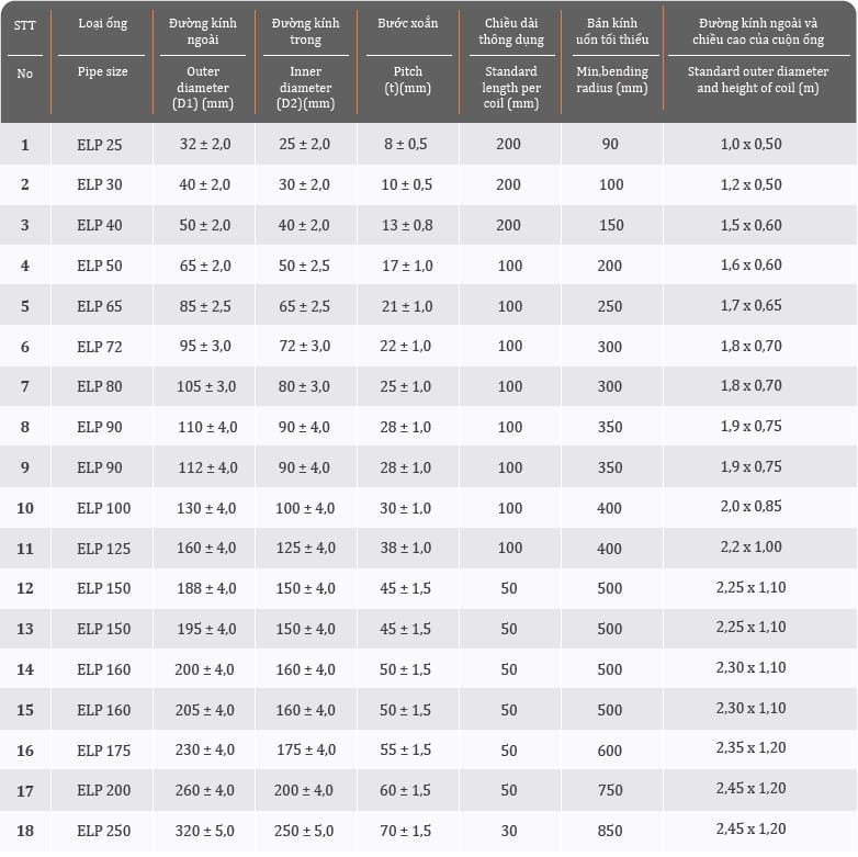 CHỦNG LOẠI VÀ QUY CÁCH ỐNG: