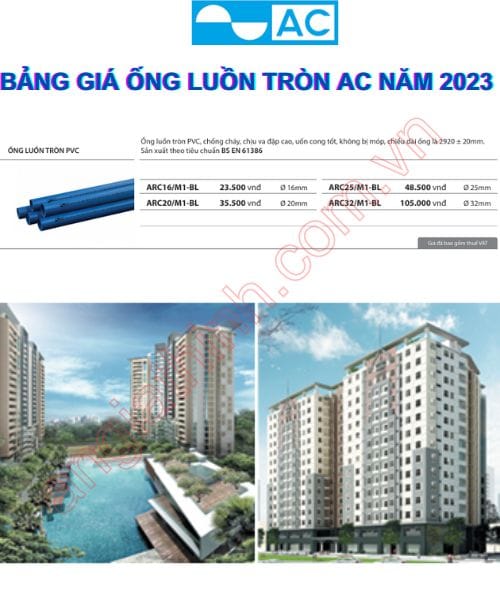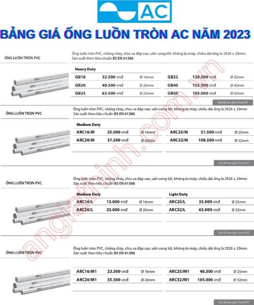 Bảng giá ống luồn dây điện AC THÁNG 1 / 2023