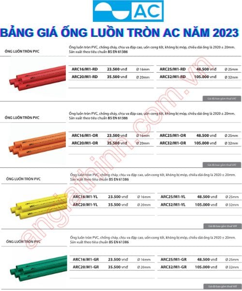 Bảng giá ống luồn dây điện AC THÁNG 1 / 2023