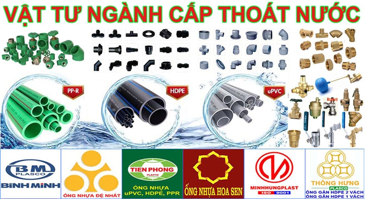 – Ống nhựa uPVC và phụ kiện (Bình Minh, Đệ Nhất, Minh Hùng, Hoa Sen, Đạt Hòa, Tiền Phong,…).