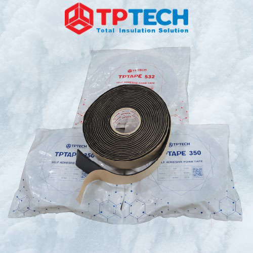 TPTAPE là băng xốp bọt tự dính tế bào kín đàn hồi để làm mát và sưởi ấm các đầu nối ống dẫn khí để ngăn chặn rò rỉ không khí, giảm độ rung / tiếng ồn và cũng là vật liệu cách nhiệt để ngăn chặn sự ngưng tụ và truyền nhiệt. Với chất kết dính tốt, TPTAPE dễ dàng được dán trên bề mặt của khớp nối.
