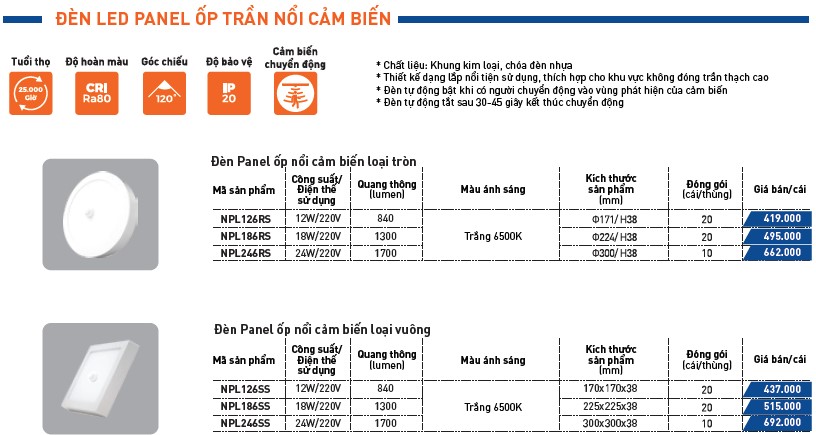 – ĐÈN LED DOWNLIGHT – ĐÈN LED PANEL ỐP TRẦN NỔI
