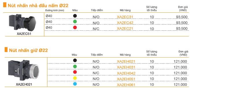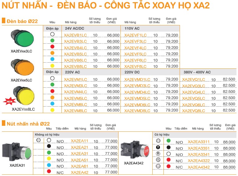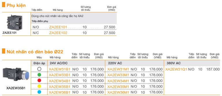 Nút nhấn – đèn báo – công tắc xoay họ XA2 Schneider