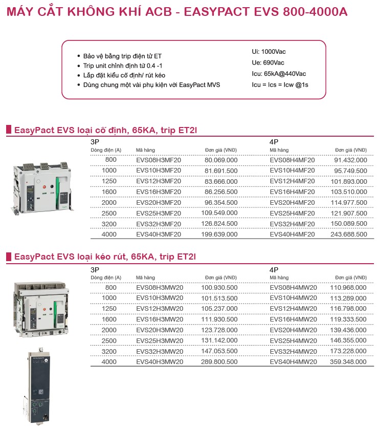 Máy cắt không khí ACB-EasyPact EVS 800-4000A Schneider