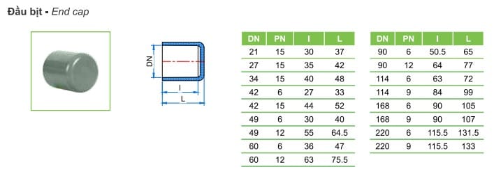 | Nắp bít PVC Tiền Phong 21 D | cái | 1.700 |