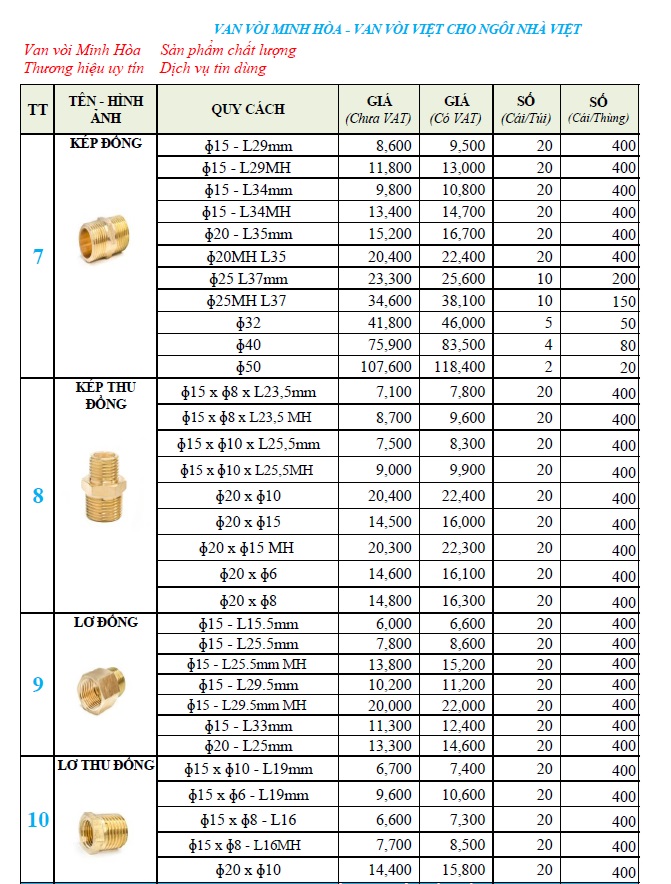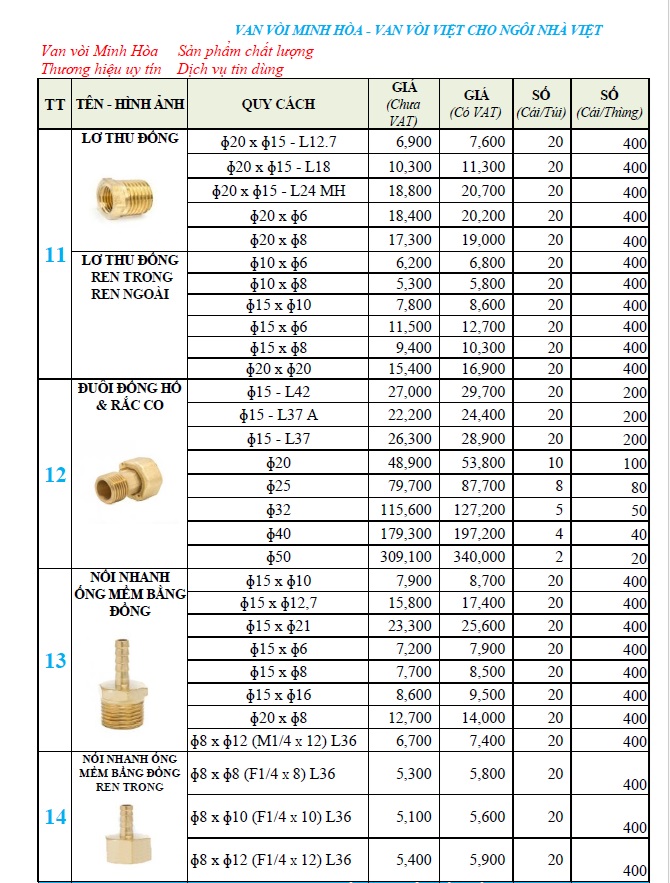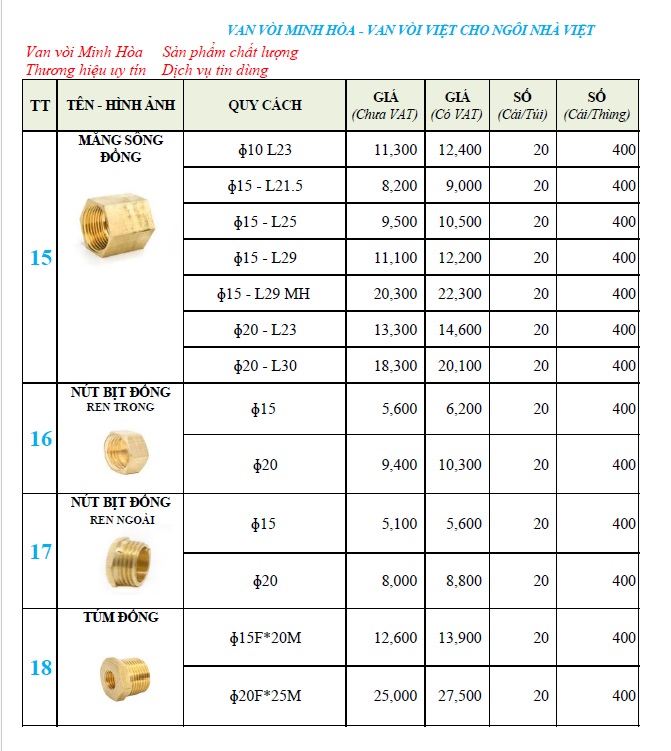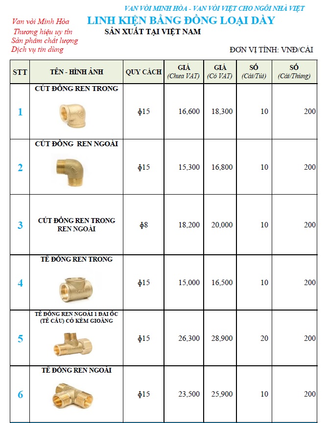 Dịch vụ / Đại lý van đồng Minh Hòa / Phụ kiện đồng thau Minh Hòa